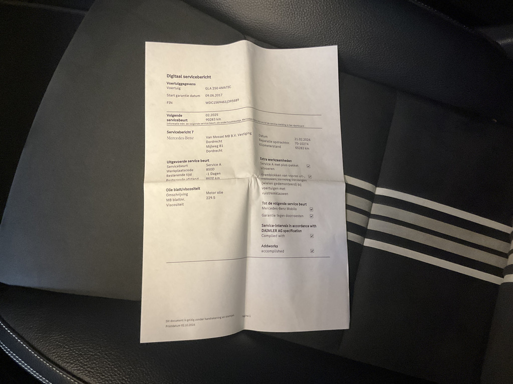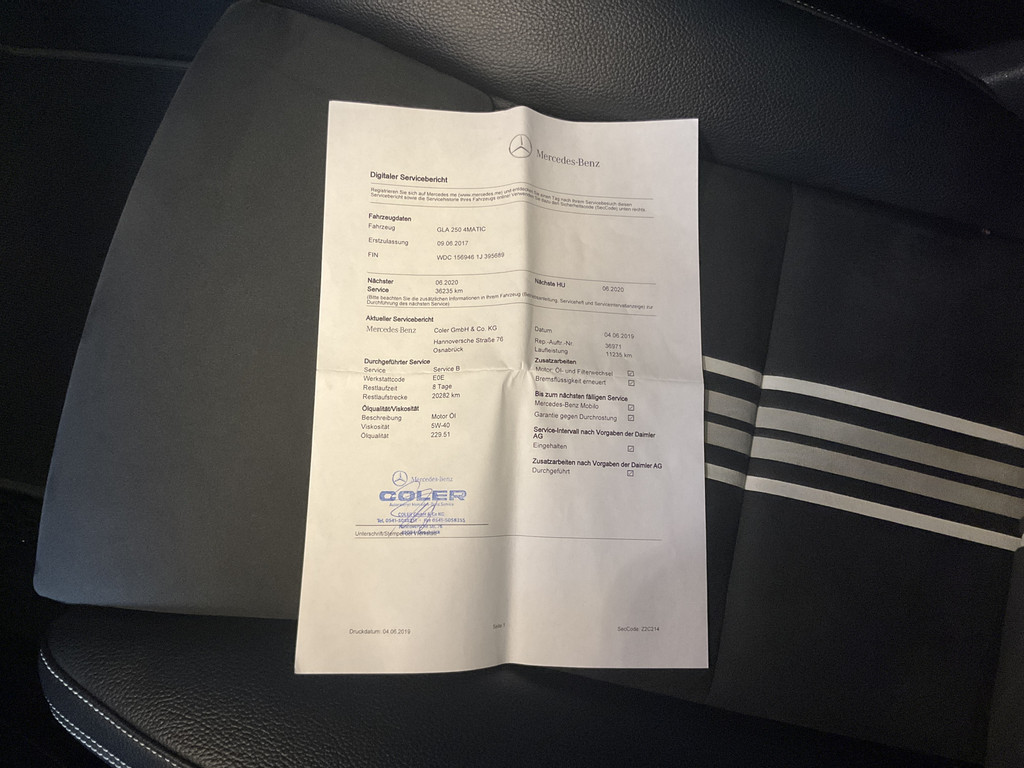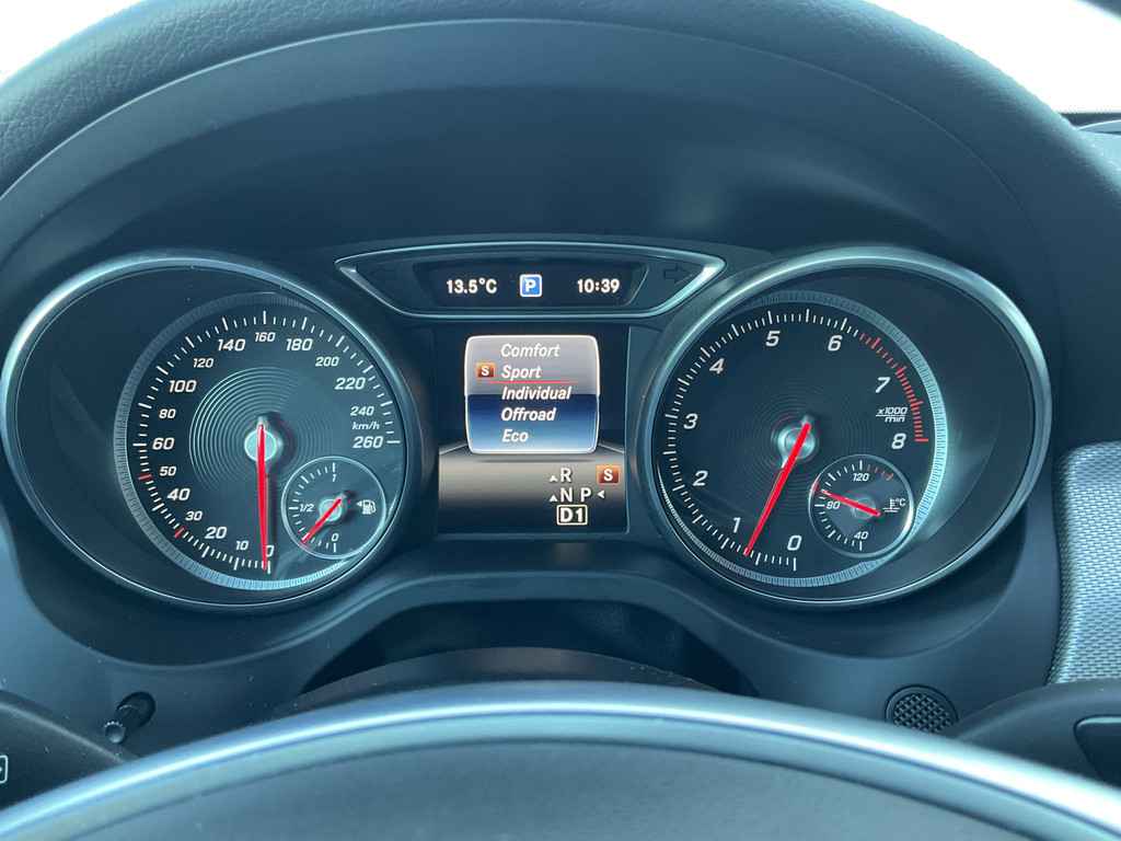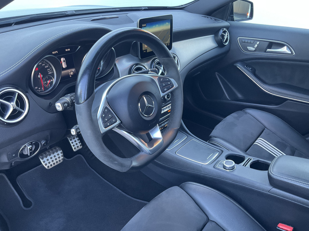 In het moderne verkeer hebt u achter het stuur van de Mercedes-Benz GLA-klasse altijd de controle. Deze auto komt uit 2017. Het AMG-styling pakket maakt direct duidelijk waar deze Mercedes-Benz voor staat: onversneden sportiviteit en rijdynamiek. Een krachtige motor geeft deze auto zijn sportieve prestaties. Het interieur ademt luxe door de leren bekleding. U past de stoelen moeiteloos aan, ze zijn elektrisch in te stellen en hebben bovendien een geheugen. Licht en lucht komen onbelemmerd binnen als het elektrisch bediende glazen panoramadak met één druk op de knop wordt geopend. De bagageruimte is toegankelijk via een comfortverhogende elektrische achterklep. Bij de rijke uitrusting horen ook 19 inch lichtmetalen velgen, LED koplampen, AMG-styling, sportonderstel, warmtewerend glas en in delen neerklapbare achterbank.