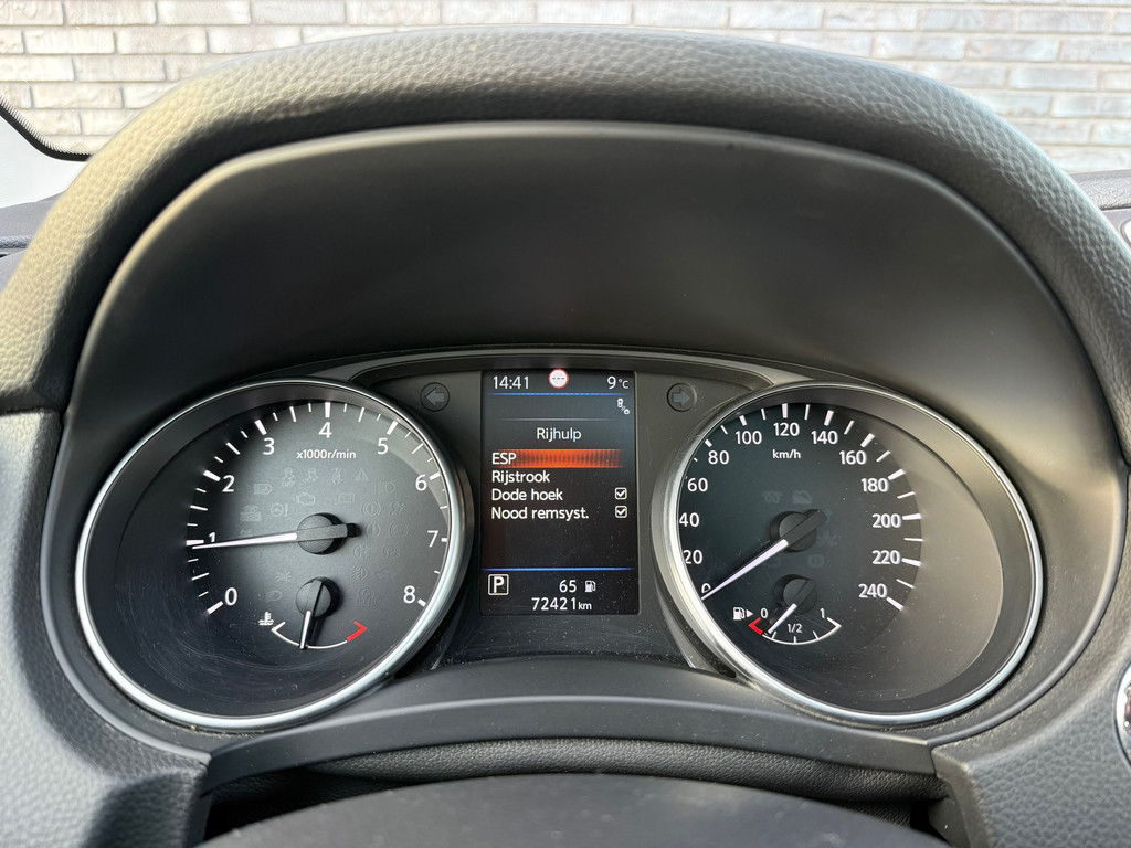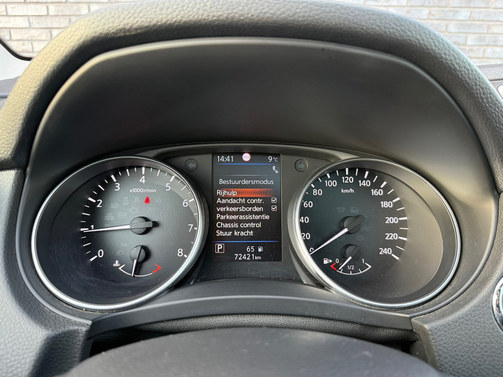De nieuwste veiligheidssystemen komen in deze Nissan Qashqai samen. In het instrumentarium laat de verkeersborddetectie de actuele verkeersborden zien. Indien u onbedoeld de rijstrook lijkt te verlaten, reageert het Lane-keeping systeem meteen en corrigeert. Als een fiets of ander voertuig zich in de dode hoek bevindt, waarschuwt het actieve dodehoekdetectie. Dit helpt ernstige ongelukken voorkomen. Met voorzieningen als accident avoidance system, hill hold functie, brake assist en bandenspanningcontrolesysteem, bent u altijd veilig onderweg.