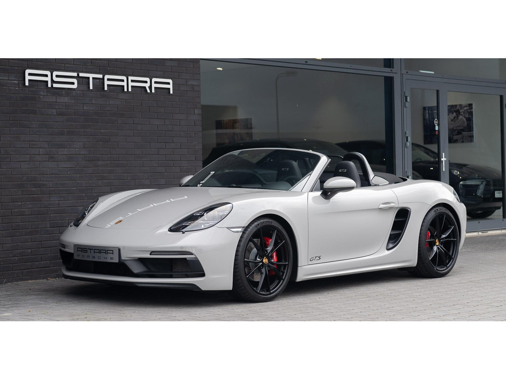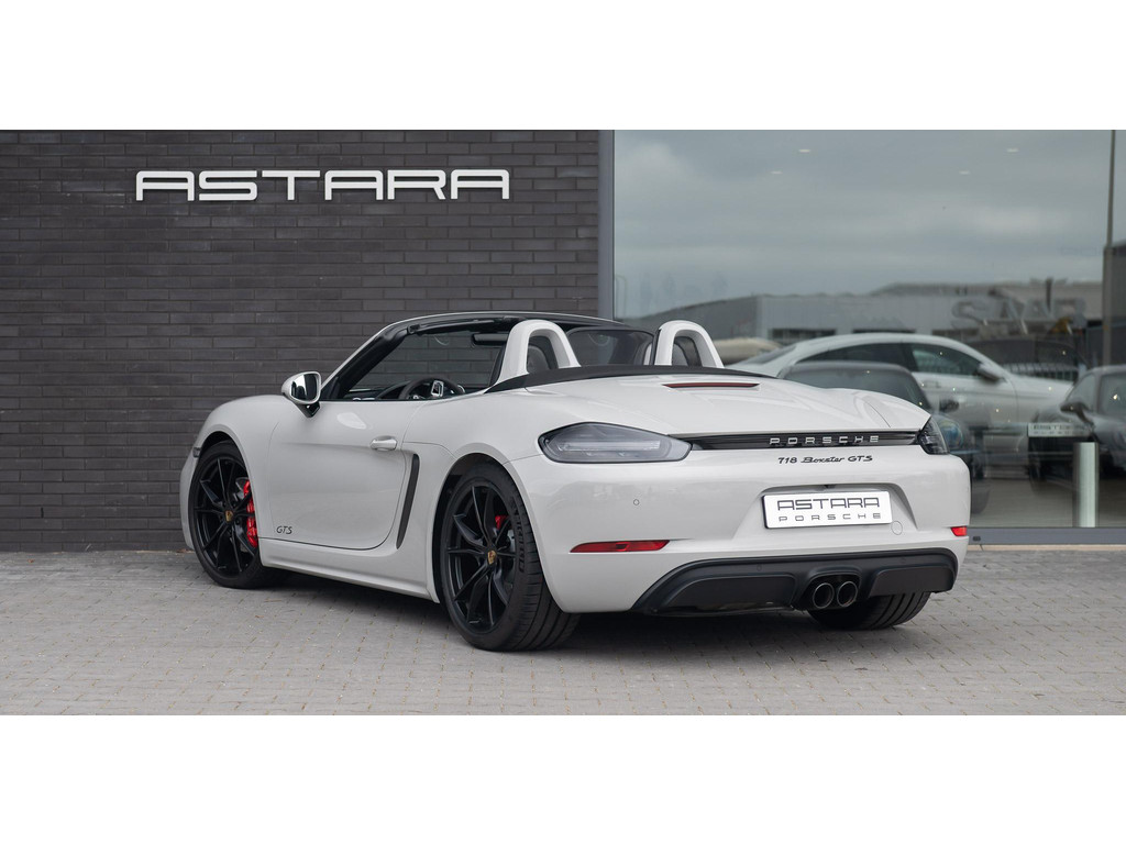 Porsche 718 Boxster GTS uit 2018, uitgevoerd in krijt met een zwart leder/alcantara met GTS-krijt pakket interieur.